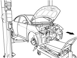 30. Remove the engine and transaxle assembly in the forward direction from the vehicle.
