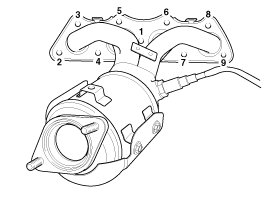 - When installing the intake manifold, tighten the nuts with pre-torque first, and then tighten the nuts with specified torque in the sequence shown.