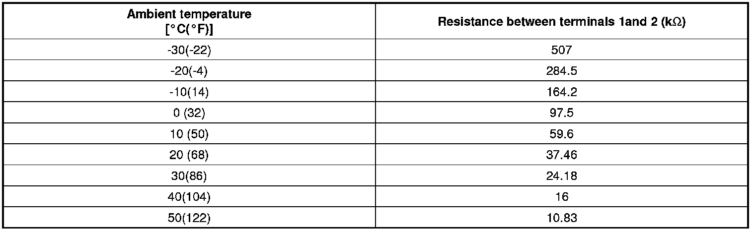 3. Check the resistance of ambient temperature sensor between terminals 1 and 2 whether it is changed by changing of the ambient temperature.