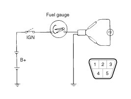 3. Turn the ignition switch to the ON, and then check that the bulb lights up and the fuel gauge needle moves to full.