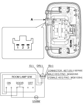 Check that the switch operates properly after disconnecting the room lamp connector (A).