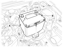 1. Disconnect the battery terminals (A). Disconnect the negative terminal first.