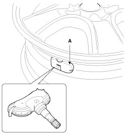 2. Remove the sealant on the wheel and TPMS sensor (A) completely.