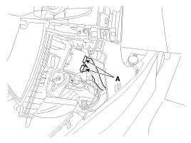 2. Disconnect the connectors (A) from center fascia tray.