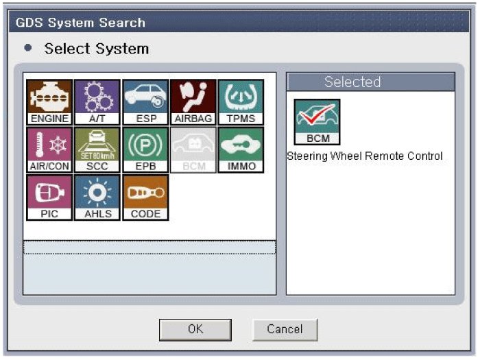 2. To diagnose the SWRC function, select the menu of model and body control module