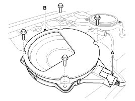 4. Remove the subwoofer speaker (B) after removing 4 bolts.