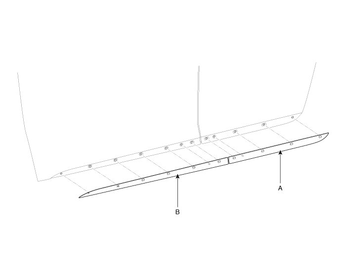 2. Using a screwdriver or remover, remove the rear waist line molding (B).