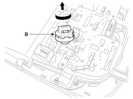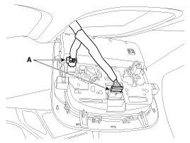 3. Remove the overhead console lamp after disconnecting the Panorama roof switch connector and lamp connector (A).