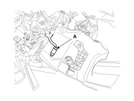 1. After loosening the mounting screws, then remove the steering column shroud panel (A).