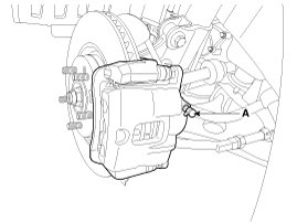3. Loosen the right-rear brake bleed screw (A) to allow air to escape from the system. Then tighten the bleed screw securely.