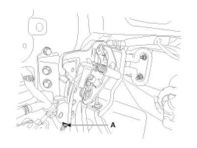 2. Adjust the adjusting nut(A) for parking brake pedal stoke 4 - 5 notches when operating effort is 196N(20kgf, 44lbf)