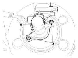 8. Remove the master cylinder (B) from the brake booster after loosening the mounting nuts (A).