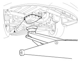 1. Install the jack to the edge of upper oil pan (A) to support the engine.