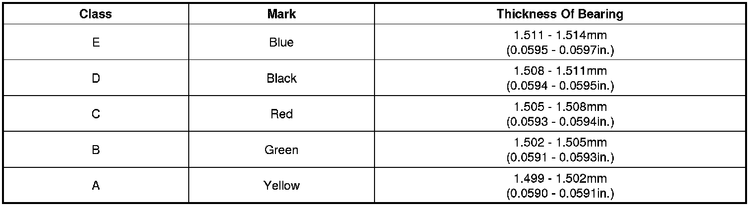 (10) If the plastigage shows the clearance is still incorrect, try the next larger or smaller bearing (the color listed above or below that one), and check clearance again.