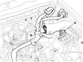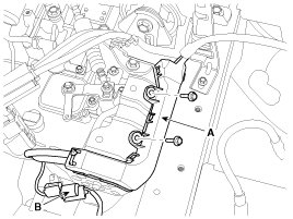 (1) Disconnect the Engine control module(ECM) connectors (B).