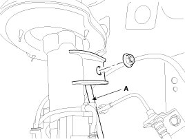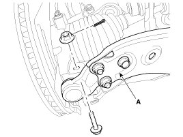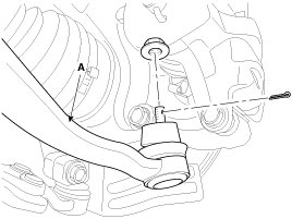 14. Loosen the bolt & nut and then disconnect the lower arm (A) from the front knuckle.