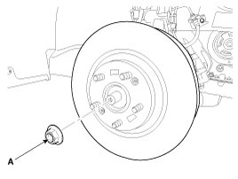 17. Remove the drive shaft coking nut (A) from the front hub.