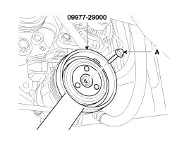 6. Remove the center bolt (A) while holding the disc & hub assembly with a commercially available disc & hub assembly bolt remover; Special tool number 09977-29000.