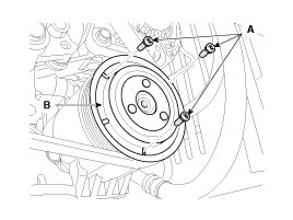 - Be careful not to damage the pulley (B) and compressor during removal/installation.