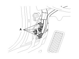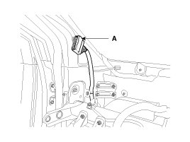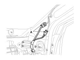 7. Disconnect the connector (A) and the mounting clips in the front pillar.