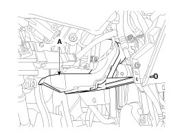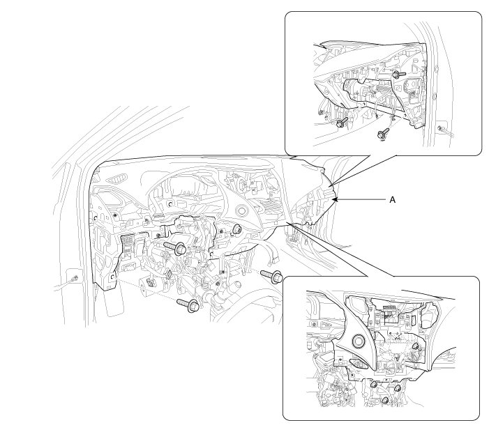 13. After loosening the mounting screws, then remove the crash pad main lower panel (A).