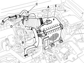 (5) Remove the air cleaner assembly (E).