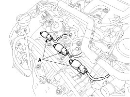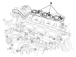 3. Disconnect the RH ignition coil connectors (A) and then remove the RH ignition coils.