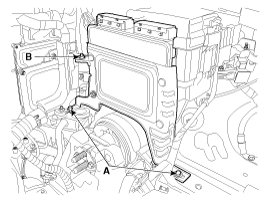 5. Remove the ECM bracket installation bolts (A) and nut (B).