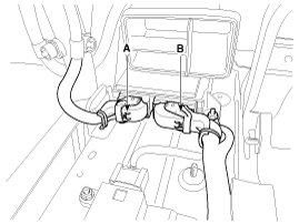 5. Pull up the lock, of the SRSCM connector, the disconnect the connector (A and B).