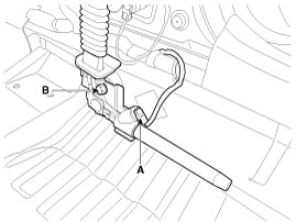 6. Loosen the anchor pretensioner mounting bolt (B) and remove the anchor pretensioner.