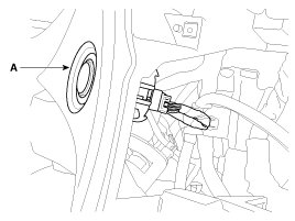 3. Disconnect the start/stop button connector. Push the hook and remove the start/stop button (A).