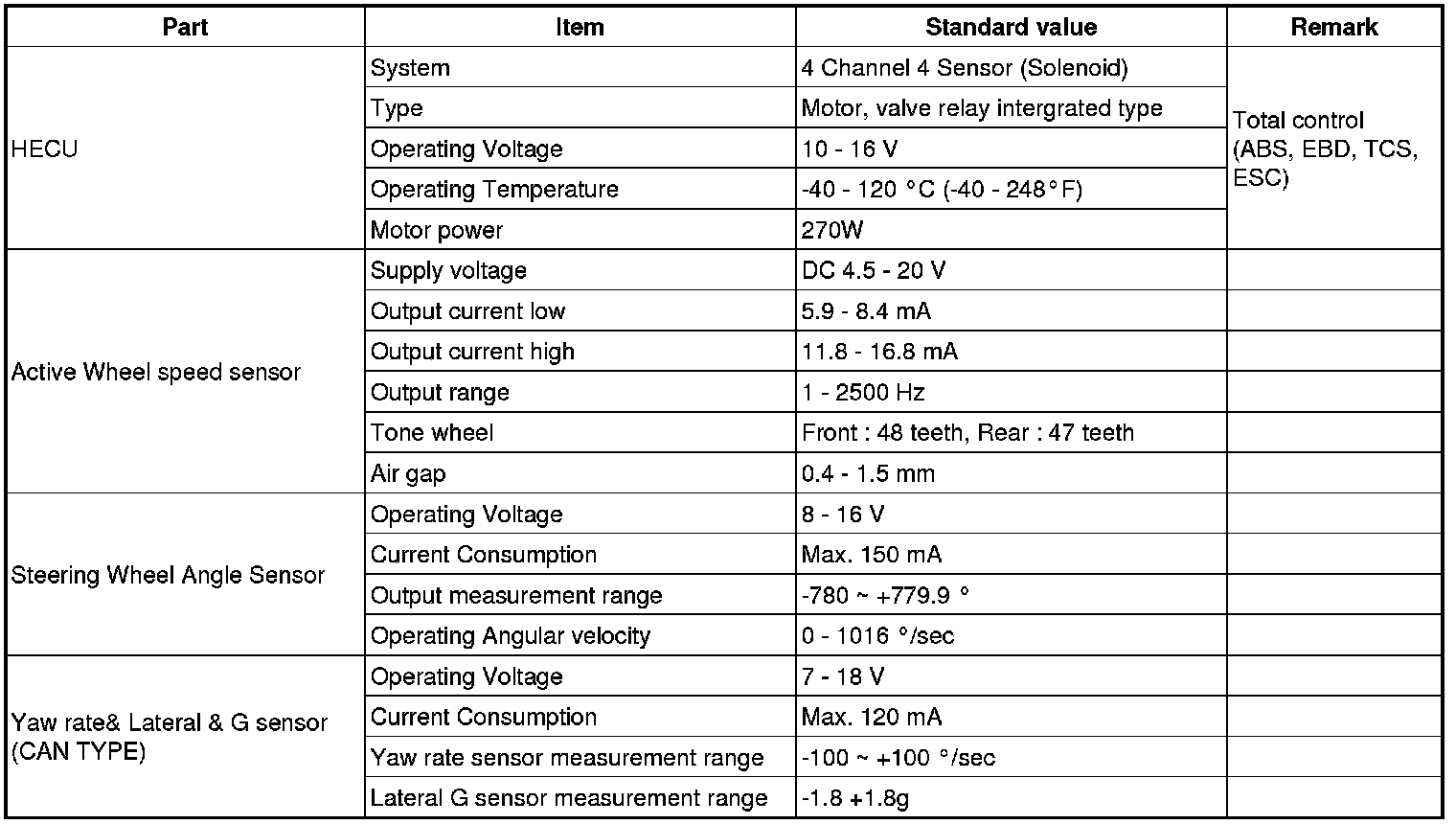Specification(ESC)