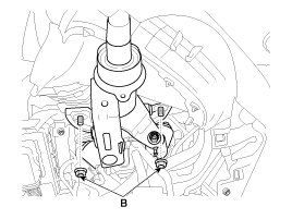 14. Remove the steering column & EPS unit assembly by loosening the mounting bolt (A) and nuts (B).