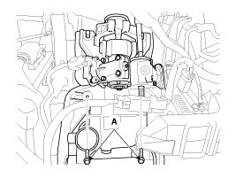 1. Loosen the bolt (A) and then disconnect the universal joint assembly from the steering column assembly.