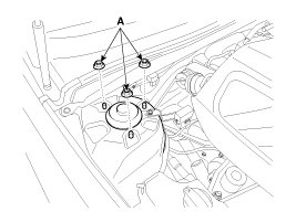 6. Loosen the strut upper locking nuts (A) and than remove the front strut assembly.