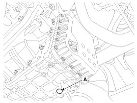 1. Remove the drain plug (A) and drain the ATF totally. Reinstall the drain plug.