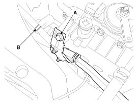 10. Remove the wiring bracket installation bolt (A) and clip (B).