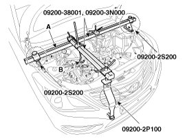 12. Install the adaptor (SST No:09200-2P100) to the beam of (SST No:09200-38001, 09200-3N000).