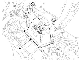 17. Remove the automatic transaxle support bracket mounting bolt (A).