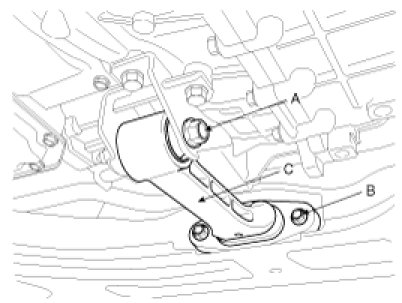 26. Remove the automatic transaxle with a jack after removing the mounting bolt (B-4ea, C-1ea).