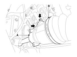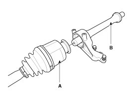 9. Loosen the mounting bolts and then remove the inner shaft (A) & driveshaft assembly (B).