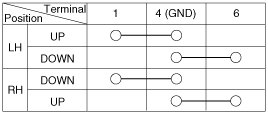 3. Connect the terminal No. 2 and No. 3 to battery voltage (12V) and terminal No. 4 to battery (-). And then check that the motor operates smoothly when connecting the terminals below.