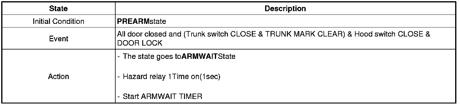 (4Doors Locked) & (4Door Not Close ON->OFF) & (Trunk Open Switch=ON) or (Hood Switch=ON)