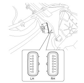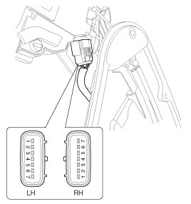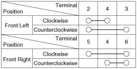 4. Check for continuity between the terminals in each switch position when inserting the key into the door according to the table.