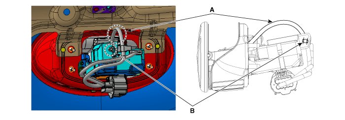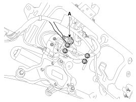 4. Remove the back view camera wiring fix clip (A) and the remove 4 nuts.