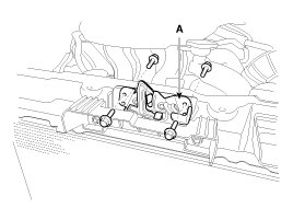 2. Remove the hood latch (A) mounting bolts.