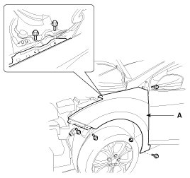 5. After loosening the fender mounting bolts and nut, then remove the fender assembly (A).