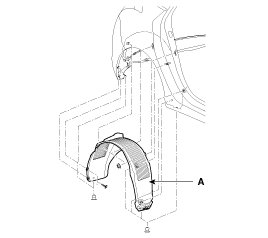 2. After loosening the mounting clips and nut, then remove the rear wheel guard (A).