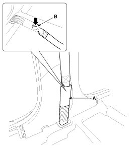 4. The seat belt anchor pretensioner (A) be removed after pushing the lock pin (B) as arrow direction.