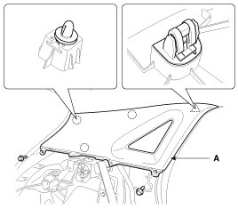 2. After loosening the mounting bolts, then remove the rear pillar trim (A).